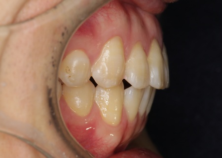 拝見したところ、全体的に歯並びがややデコボコとしており、特に下前歯はねじれや位置のズレが目立っていました。 このままの状態を放置すると見た目の問題にとどまらず、虫歯の進行や歯並びの乱れによって将来的に痛みが出たり、歯の寿命が短くなったりする可能性があります。 以上のことから、歯の着色を除去する治療と歯並びを整える矯正治療、そして虫歯の治療を行う必要があると診断しました。 |
